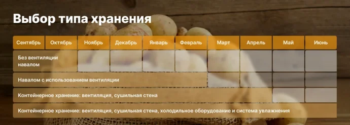 Варианты закладки картофеля на хранение
