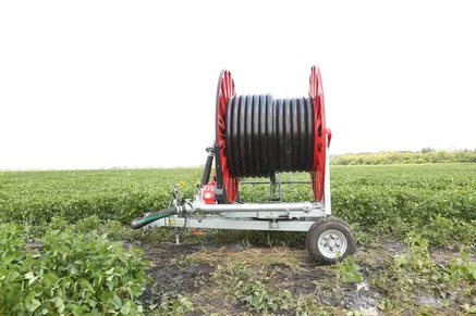 Предлагаемые системы полива и орошения комплектуются специальной системой, объединяющей редуктор и турбину. Турбина машин – с разделителем потока. Благодаря данной технической особенности дождевальные машины бренда RM не нуждаются в ремне. Работают ирригаторы по следующему принципу. На их шасси монтируется специальная катушка со шлангом. Чтобы приступить к работе, шланг требуется размотать на необходимую длину (от 100 до 600 м, в зависимости от длины самого шланга) при помощи трактора. Под действием давления воды шланг накручивается на катушку автоматически, после чего орошается полоса шириной до 70 метров. В стандартной комплектации системы полива полей оборудуются телескопическими опорами, гидрантом с рукавом, тахометром с часами, манометром и некоторыми другими приспособлениями. Они предусматривают возможность подачи воды сразу с двух сторон, оснащаются парой противовесов.