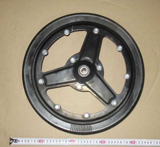 Бандаж колеса изготовлен из цельнолитой резины. Степень деформации бандажа зависит от твёрдости почвы.
